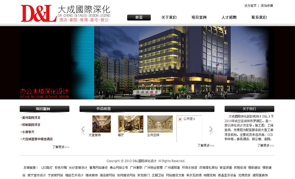 項(xiàng)目名稱:大成國(guó)際深化設(shè)計(jì)機(jī)構(gòu) 簽定時(shí)間:2013-11-28 項(xiàng)目網(wǎng)址:http://www.lvshsj.com/ 項(xiàng)目簡(jiǎn)介: 大成國(guó)際深化設(shè)計(jì)機(jī)構(gòu)(D&L)于2010年成立在深圳市羅湖區(qū)。是一家以深化設(shè)計(jì)為
