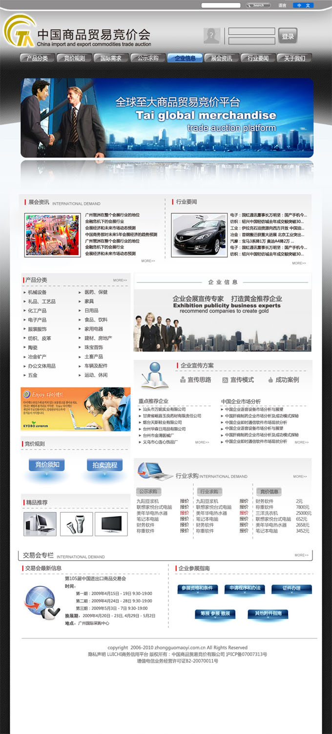 項目名稱:中國商品貿(mào)易競價有限公司網(wǎng)站建設(shè)簽定時間:2009-04-13