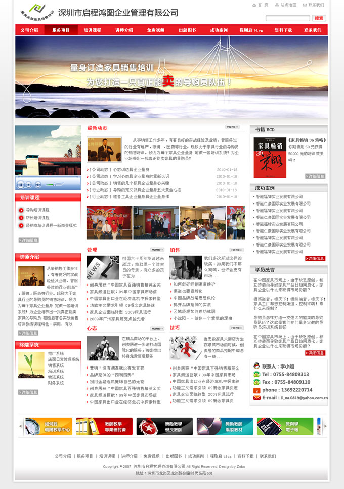 項(xiàng)目名稱(chēng):深圳啟程鴻圖企業(yè)管理有限公司網(wǎng)站建設(shè)簽定日期:2010年1月16日深圳市啟程鴻圖企業(yè)管理公司,成立于2006年底,是一家專(zhuān)精于家具行業(yè)咨詢(xún)培訓(xùn)公司。家具行業(yè)知名培訓(xùn)咨詢(xún)服務(wù)機(jī)構(gòu)。為家具企業(yè)提供量身定做的終端咨詢(xún)培訓(xùn)服務(wù)。咨詢(xún)項(xiàng)目: