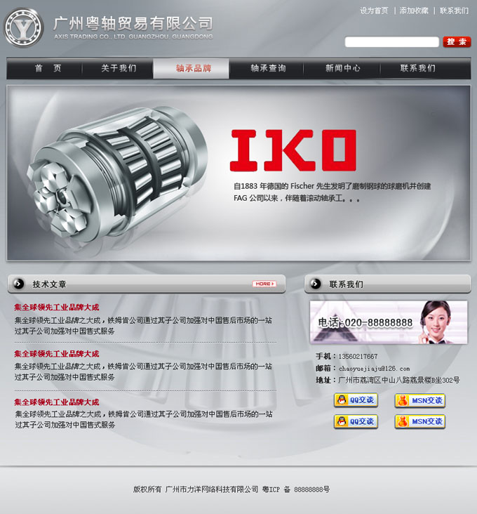 項(xiàng)目名稱:廣州粵軸貿(mào)易有限公司網(wǎng)站建設(shè)簽定日期:2010年3月24日公司簡(jiǎn)介:廣州粵軸貿(mào)易——世界進(jìn)口軸承品牌商務(wù)平臺(tái)廣州粵軸貿(mào)易有限公司致力于為經(jīng)銷商和制造企業(yè)提供領(lǐng)先的產(chǎn)品和優(yōu)質(zhì)的服務(wù),公司主要銷售世界頂級(jí)軸承品牌:瑞典SKF軸承、德國(guó)