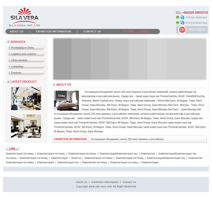 項目名稱:SilaveraInt,.Ltd網(wǎng)站建設(shè)簽定日期:2010年3月26日網(wǎng)站首頁效果: