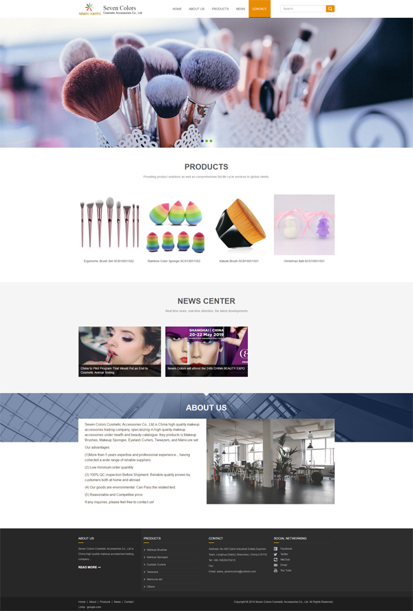 項(xiàng)目名稱:SevenColorsCosmeticAccessoriesCo.,Ltd建站 簽訂時(shí)間:2019-5-10 項(xiàng)目網(wǎng)址:www.sevencolorscosmetic.com 公司簡(jiǎn)介: SevenColorsCosmetic
