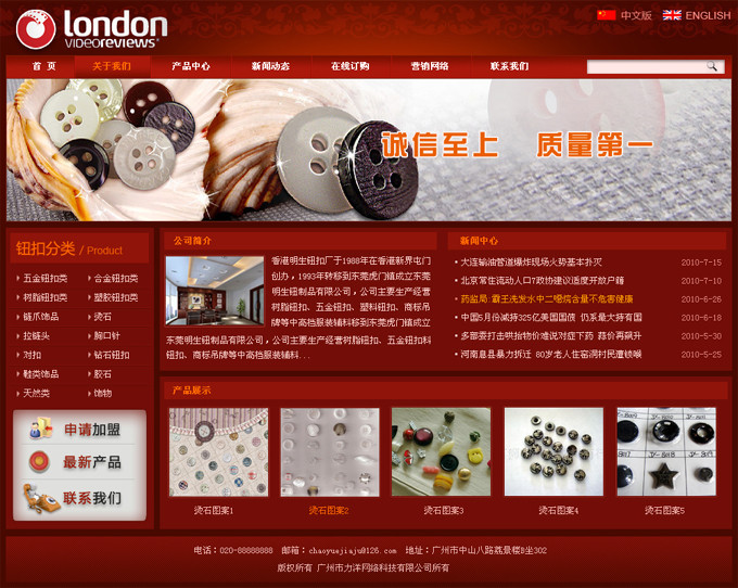 項(xiàng)目名稱:香港明生鈕扣廠網(wǎng)站改版簽定日期:2010年7月16日網(wǎng)站網(wǎng)址:www.mingsang.net注:原網(wǎng)站是我們公司于2007年制作,經(jīng)過3年運(yùn)行,網(wǎng)站除了功能需要升級外,美化也需要做適當(dāng)?shù)膬?yōu)化。