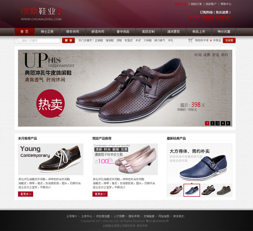 項目名稱:創(chuàng)鼎鞋業(yè)有限公司網(wǎng)站建設(shè)簽定日期:2011年7月19日網(wǎng)站首頁設(shè)計稿:(縮略圖)