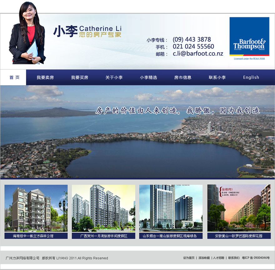 項(xiàng)目名稱:奧克蘭小李網(wǎng)站建設(shè)簽定日期:2011年8月26日注冊(cè)網(wǎng)址:http://www.xiaoli.co.nz網(wǎng)站首頁(yè)設(shè)計(jì)稿:(縮略圖)小李簡(jiǎn)介:小李現(xiàn)在就職于奧克蘭最大的房地產(chǎn)公司Barfoot&Thompsn,是一名非常優(yōu)秀