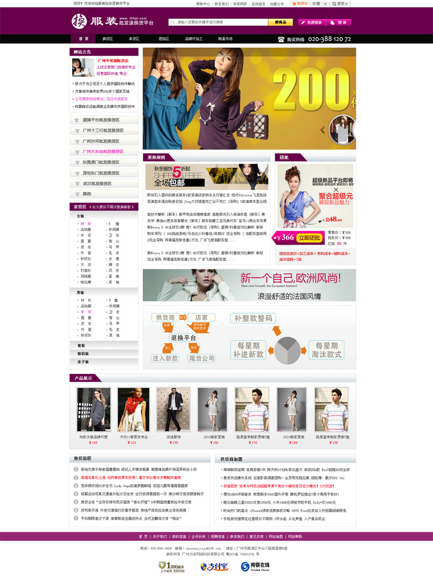 項目名稱:廣州服裝批發(fā)退換貨平臺網(wǎng)站建設(shè)簽定日期:2011年10月15日網(wǎng)站首頁設(shè)計稿:(縮略圖)