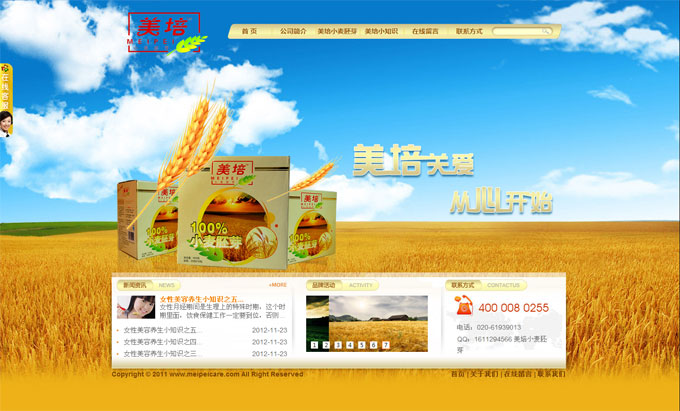 項(xiàng)目名稱:廣州飏帆貿(mào)易有限公司網(wǎng)站建設(shè)簽定日期:2011年11月26日網(wǎng)址:http://www.meipeicare.com/廣州飏帆貿(mào)易有限公司,2004年開始至今,從事小麥胚芽的推廣工作。從每一片胚芽的精挑細(xì)選,原材料的運(yùn)輸,產(chǎn)品的加