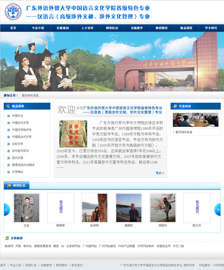 項目名稱:廣東外語外貿(mào)大學(xué)網(wǎng)站建設(shè)簽定日期:2011年11月29日網(wǎng)址:http://www.gwzwhyy.com/ 廣東外語外貿(mào)大學(xué)中文學(xué)院漢語言本科專業(yè)的前身是廣州外國語學(xué)院1986年開設(shè)的中英文秘書專業(yè),1989年升格為本科專業(yè),