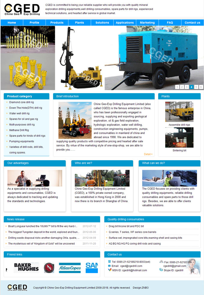 項目名稱:鉆探設(shè)備有限公司網(wǎng)站建設(shè)簽定日期:2012年3月23日網(wǎng)址:http://www.cgedrill.com