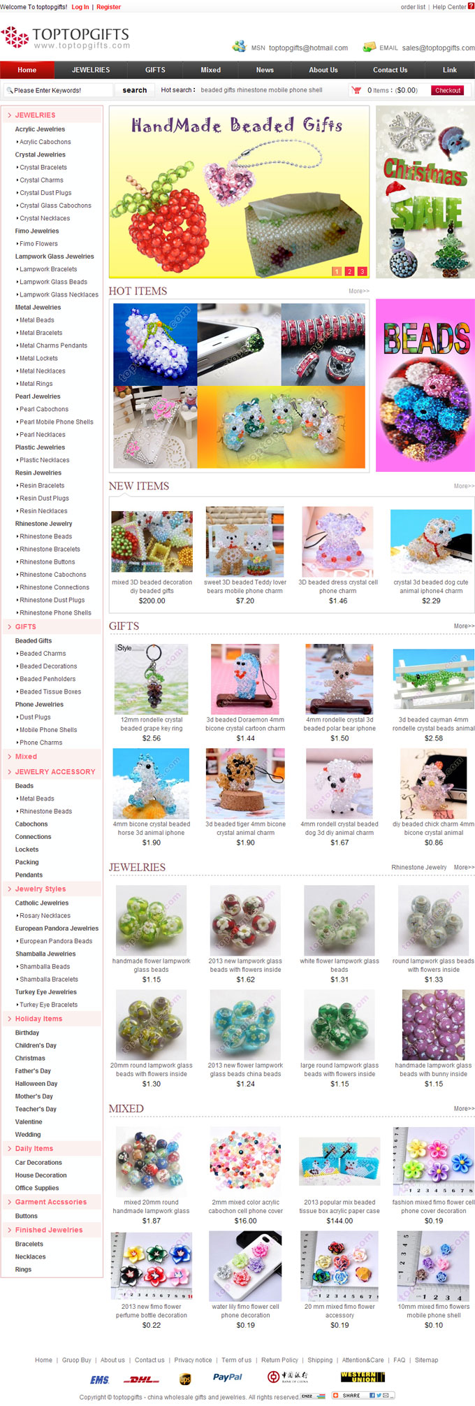 Toptopgifts.com manly wholesale top gifts, fashion jewelry and accessories from China. Here we can offer handmade beaded gifts, phone decorations gifts, loose jewelry beads, fashion bead jewelries…. We have our owned factories, custom orders are accepted. Welcome to toptopgifts to get unique gifts and jewelries.