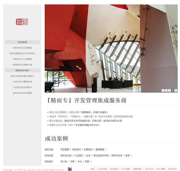 項目名稱:廣州智略房地產(chǎn)咨詢有限公司網(wǎng)站建設簽定日期:2012年9月15日網(wǎng)址:http://www.sapience.com.cn