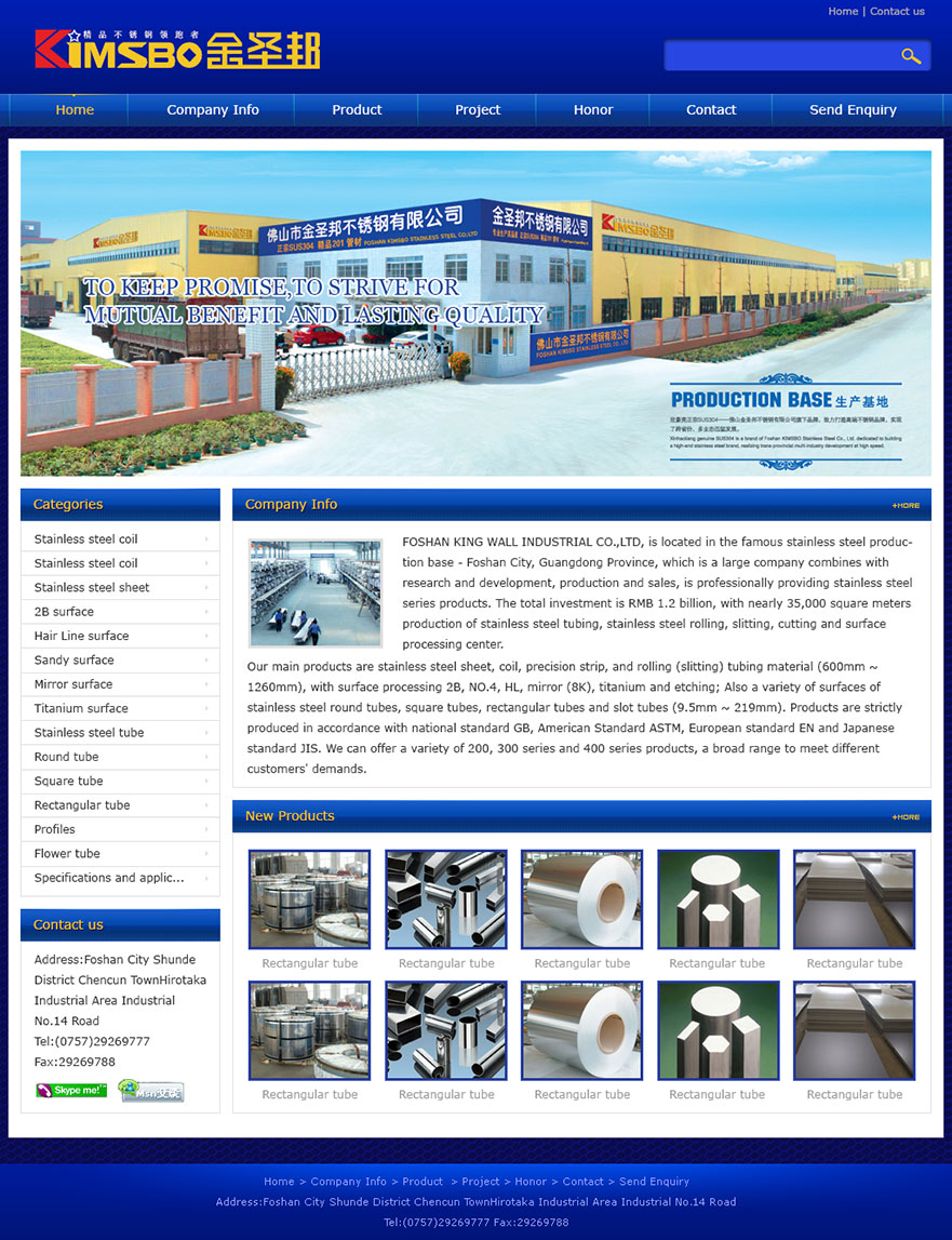 項(xiàng)目名稱:Foshan KIMSBO Stainless Steel Co.,Ltd網(wǎng)站建設(shè)