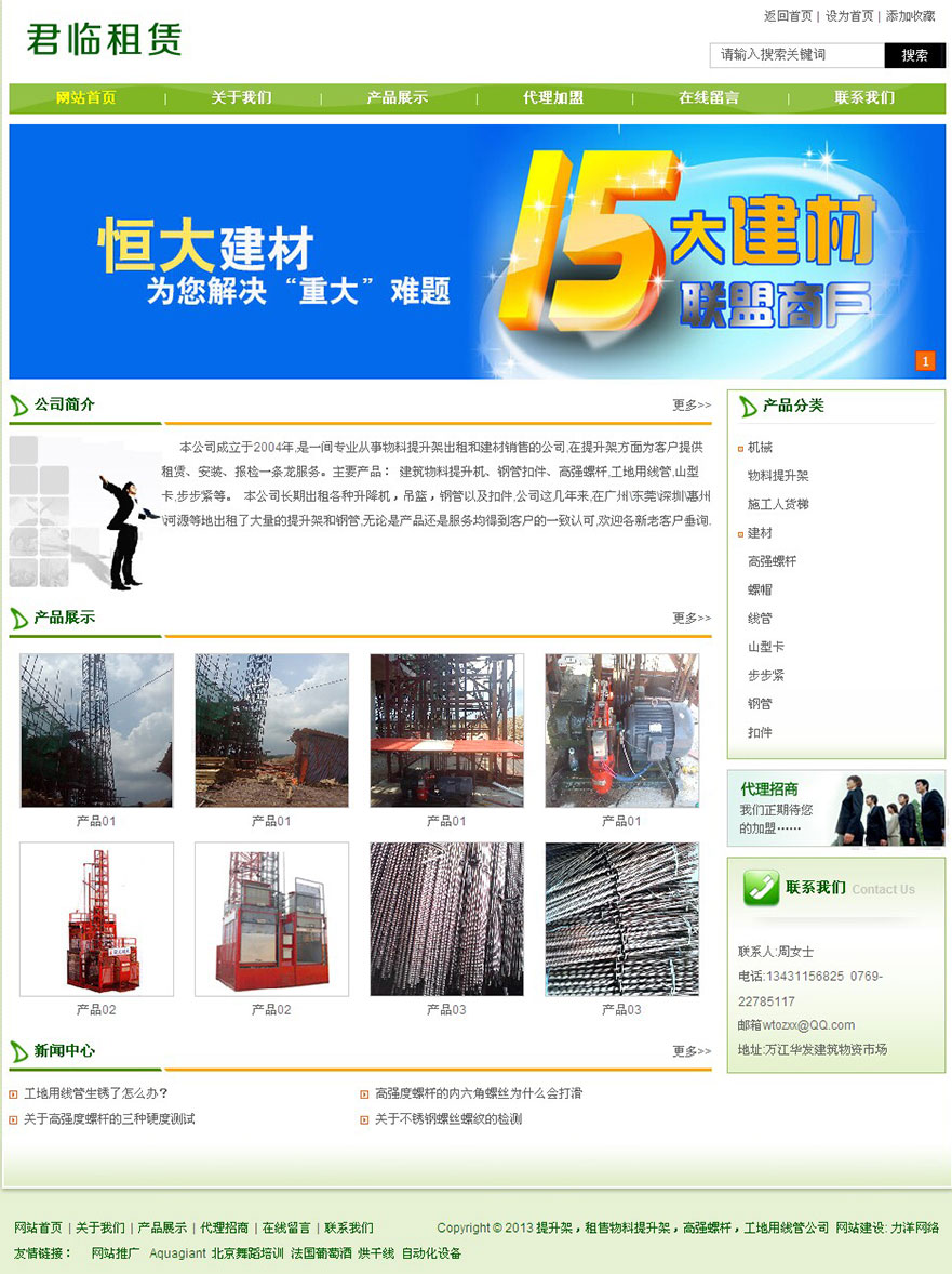 項(xiàng)目名稱:東莞萬(wàn)江建材網(wǎng)站建設(shè)簽定日期:2013年5月22日網(wǎng)址:http://www.junlinzl.com本公司成立于2004年,是一間專業(yè)從事物料提升架出租和建材銷售的公司,在提升架方面為客戶提供租賃、安裝、報(bào)檢一條龍服務(wù)。主要產(chǎn)品