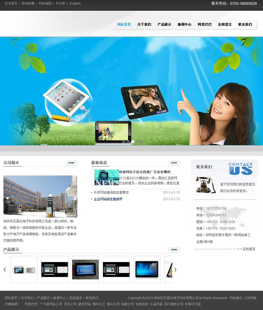 項目名稱:深圳市貝恩達(dá)電子科技有限公司網(wǎng)站建設(shè)簽定日期:2013年6月3日網(wǎng)址:http://www.beienda.com深圳市貝恩達(dá)電子科技有限公司是平板電腦,移動電源.數(shù)碼攝像機(jī),網(wǎng)絡(luò)高清播放器。等產(chǎn)品專業(yè)生產(chǎn)加工的公司,擁有完整、科