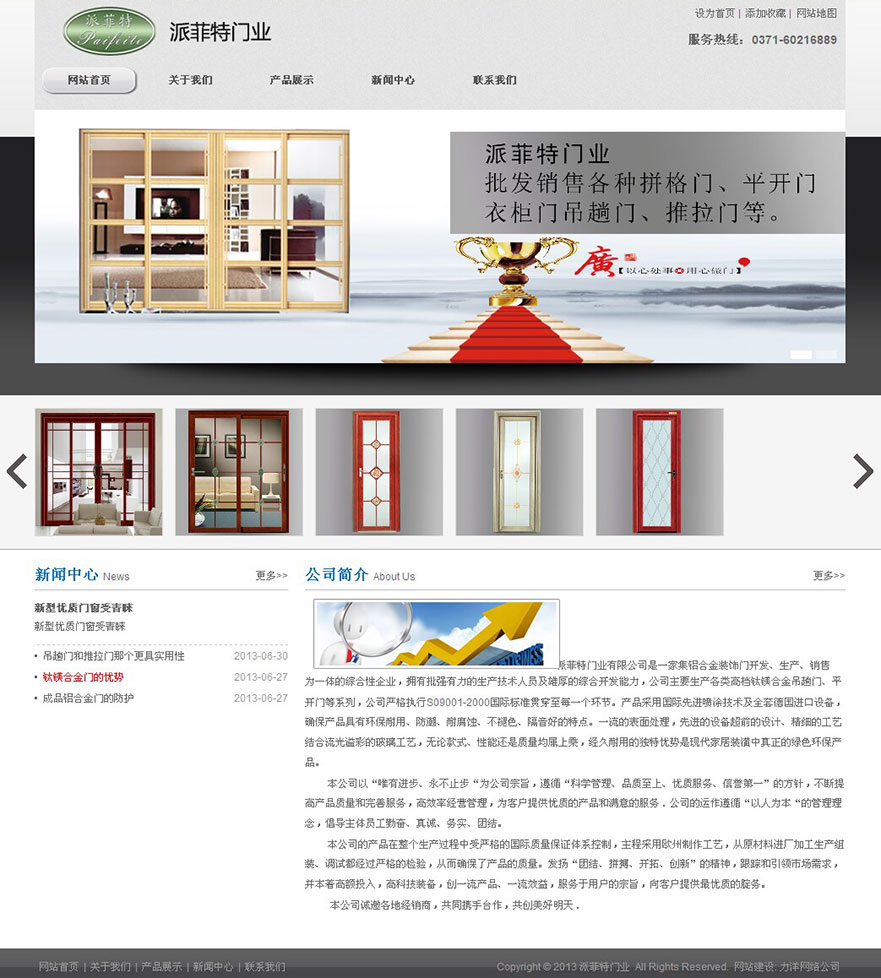 項(xiàng)目名稱:派菲特門業(yè)有限公司網(wǎng)站建設(shè)簽定日期:2013年6月13日網(wǎng)址:http://www.paifeitemenye.com派菲特門業(yè)有限公司是一家集鋁合金裝飾門開發(fā)、生產(chǎn)、銷售為—體的綜合性企業(yè),擁有批強(qiáng)有力的生產(chǎn)技術(shù)人員