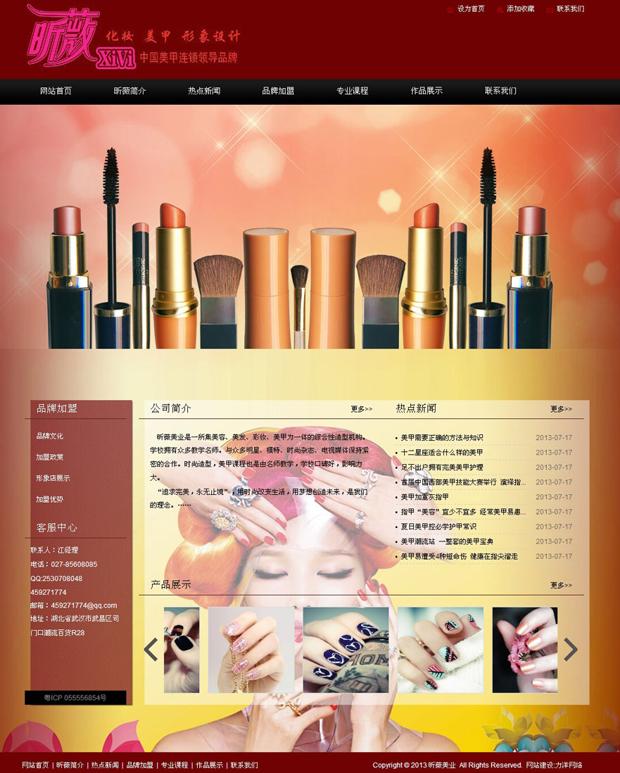項(xiàng)目名稱(chēng):昕薇美業(yè)德網(wǎng)站建設(shè)簽定日期:2013年7月12日網(wǎng)址:http://www.xinweimeiye.com昕薇美業(yè)是一所集美容、美發(fā)、彩妝、美甲為一體的綜合性造型機(jī)構(gòu)。學(xué)校擁有眾多教學(xué)名師。與眾多明星、模特、時(shí)尚雜志、電視媒體保持